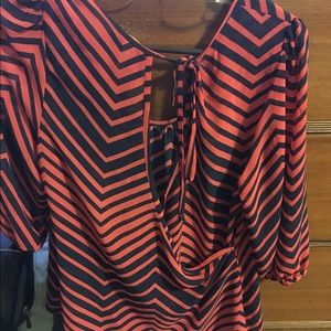 Pink and navy striped blouse. Ties in back
