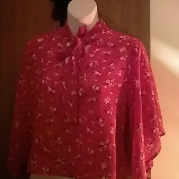 Red floral crop top with tie in the front and flowing sleeves