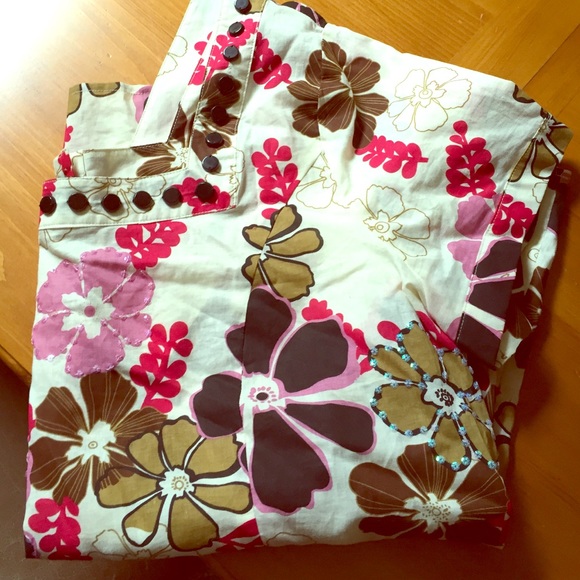 Beautiful never worn top! Lightweight soft material. It has beautiful detailed beading. Dress it up or wear casual.