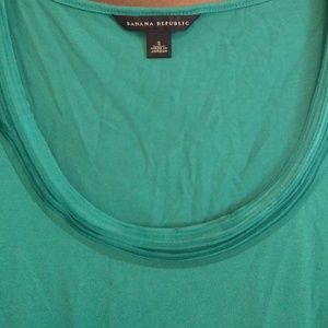 Teal green tank top with stretch, pretty multi layer ribbon detail at neckline