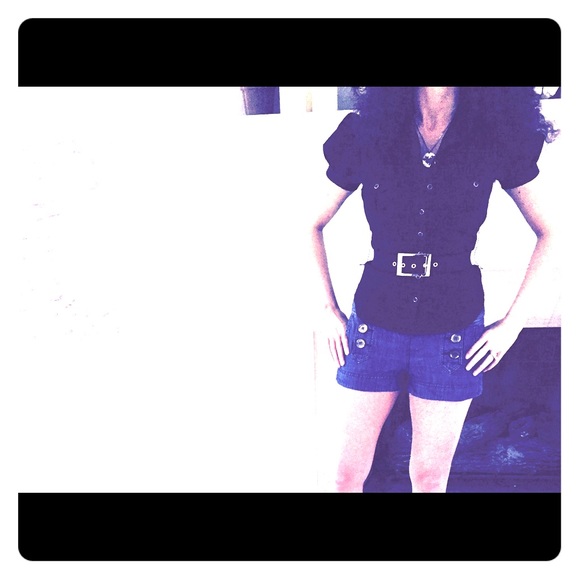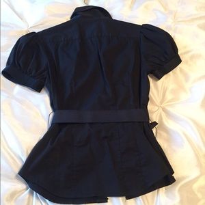 Crisp Black button down top with belt to match! Pair it with jeans and heels for a night out or with a suit for a professional look!