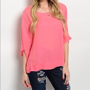 Beautiful salmon colored top. Super soft and lightweight. Beautiful front detail. S M L
