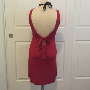 Red v neck top. Can also be used as a dress or can be worn with leggings. Has a sexy low back that can be tied with a bow.