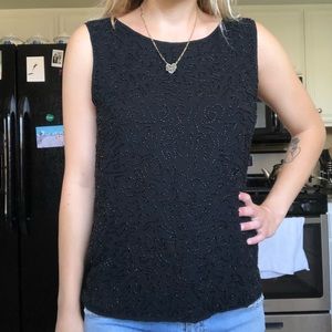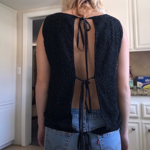 Black diamond beaded top blouse paper crown Lauren Conrad brand.. brand new never worn retails for 300 sold out everywhere super pretty and elegant.. Has open back in three different sections cut out .. Sequins beads pinup 60s 50s 40s