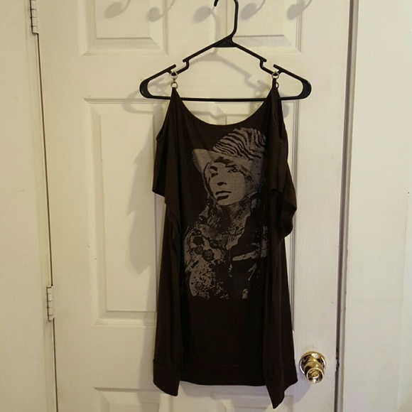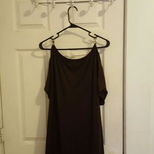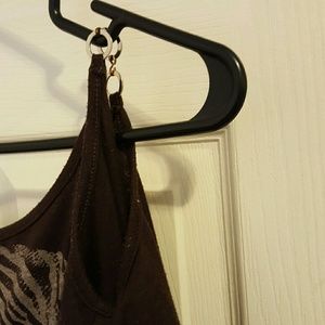 Chocolate banded bottom top with cutout armholes and chain link straps, some beading from washing.