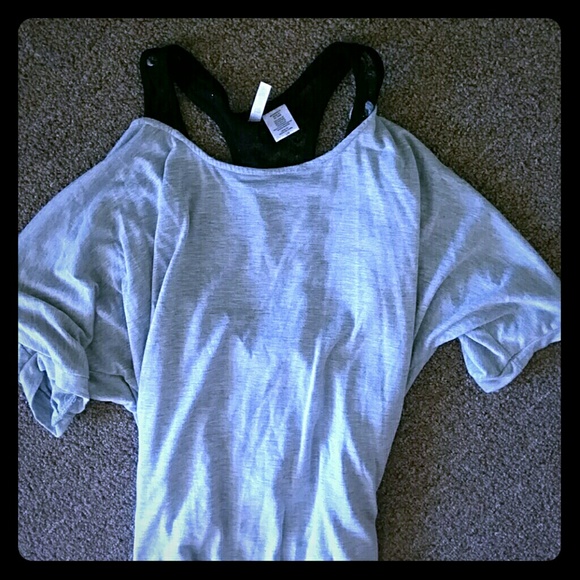 Grey off the shoulders with black lace under