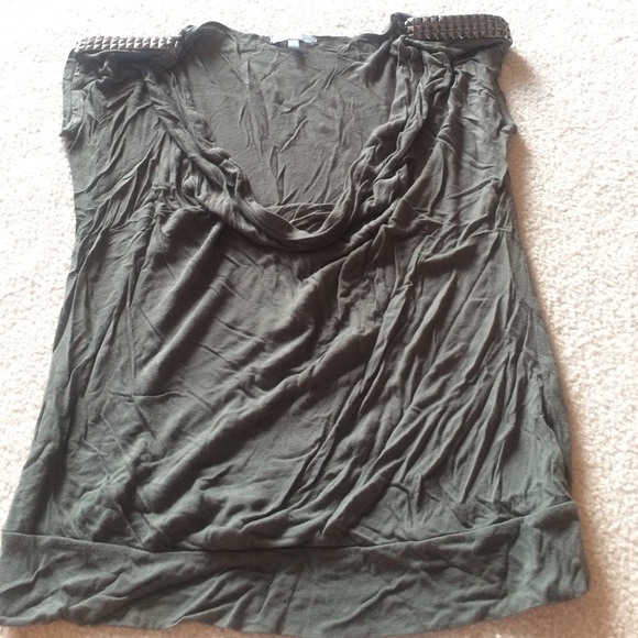 Flowy. Low cut. Decorative shoulders. Olive color.