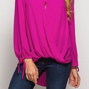 Go from Day to Night in this magenta high low top. Will also look great with white straight or flare leg jeans.