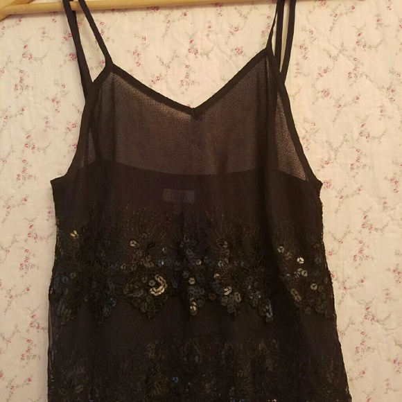 Cute black lace sequin tank top