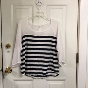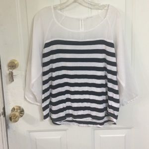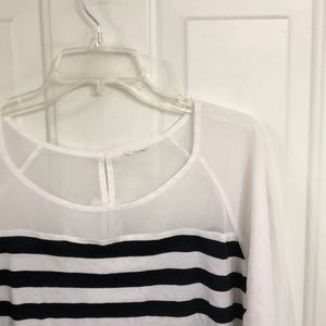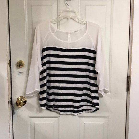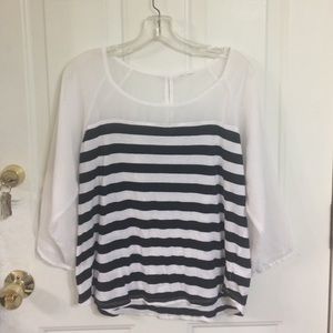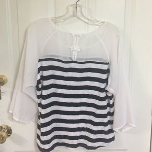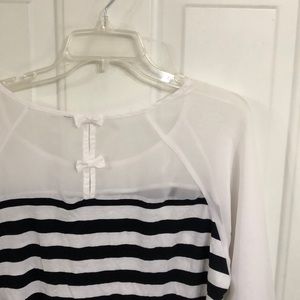 Top. Cut off tag, don't remember brand. Upper: 100% polyester, lower: 60% cotton, 40% modal. Cute bow details. Sheer upper with cute bow detail on back.