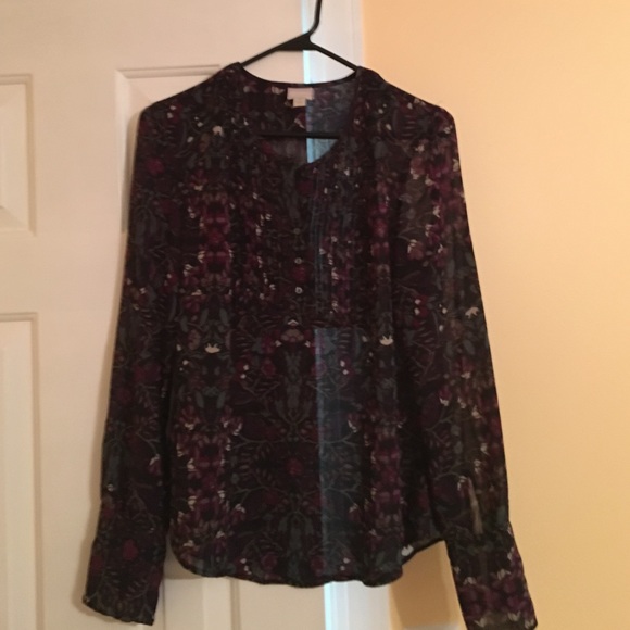 Long sleeve floral pullover over top with buttons in front. Excellent condition.
