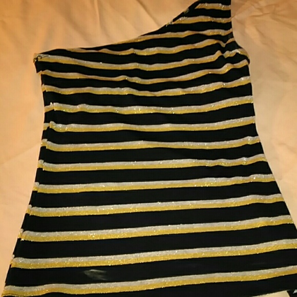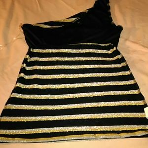 Shoulder out top gold silver black sparkly for the plane large bra inserted just in time for the holidays never worn like new