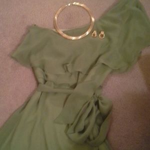 Gorgeous green silky one shoulder top. Could even be a mini dress. Fully lined and belted at waist. Too pretty to see in pictures. Greek godess loiik. Perfect condition.