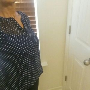 Beautiful navy blue polka dot shirt. Great to dress up or wear casual. It's a small but fits like a medium. Comes with a tank for modesty. Worn only once. Great condition. Smoke free home