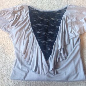 Stretchy so it can be form fitting but super comfy! Gently worn No holes or stains and lace makes this shirt pop!