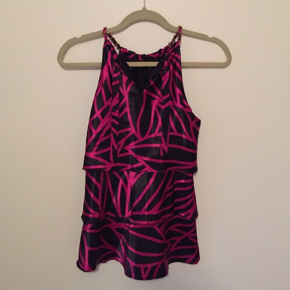 Silky smooth pink and black ruffle top perfect for work or fun