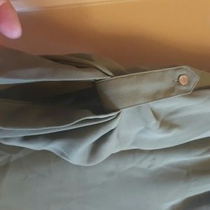 Never worn. Olive green with tags. Hi lo top. Button up sleeves. 100% polyester