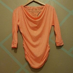 Simple peach top, half sleeve with lace in back. Never worn