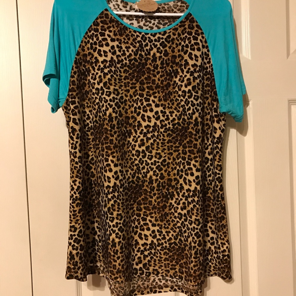 Turquoise and leopard top