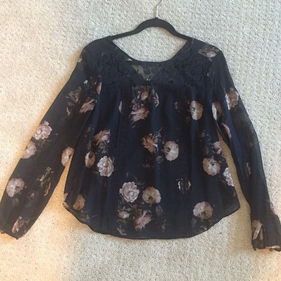 Rachel Roy long sleeve sheer blouse with lace detail on the neck