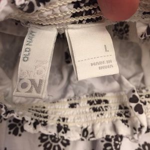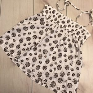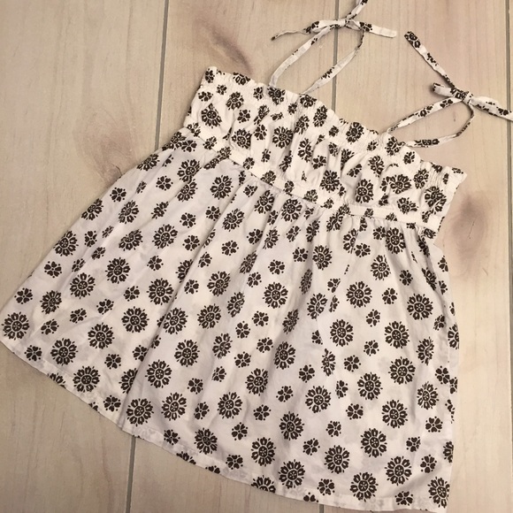 White top with brown print. Shoulder straps are adjustable just tie at desired length. Has some discoloration on the print on the backside (see pics). Old Navy brand size L (10-12). 3/19/98 Or $3 as add on, contact me to make custom listing.