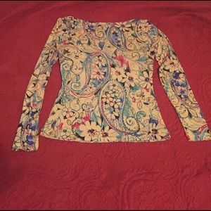 Feminine flowery outlined lightweight multicolored. The chest area has little pleats.
