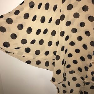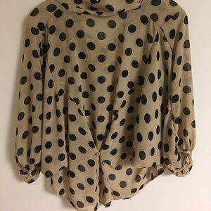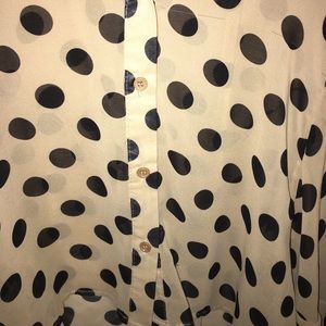 Coffee brown with black dots, button up, loose fit, polyester.