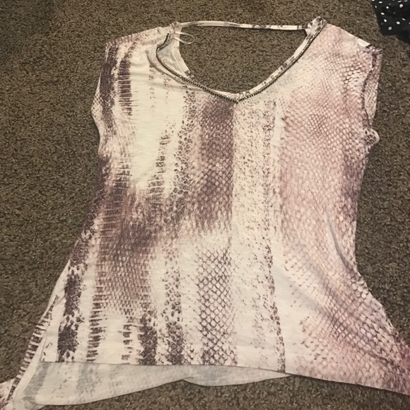 Snakeskin print with rhinestones around the neck. top of the back is open