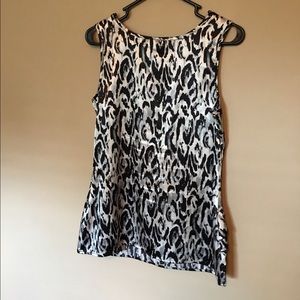 Silky top with a delicate ruffle across the front.