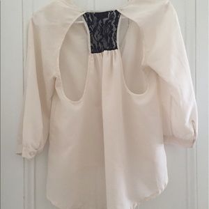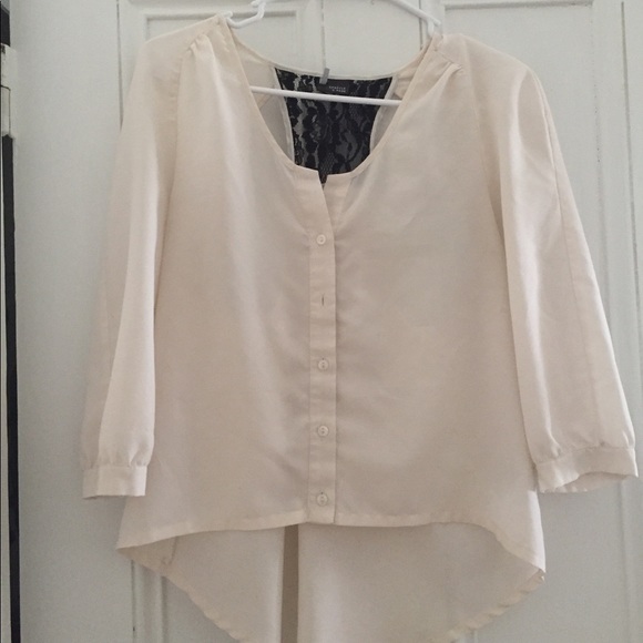 White top / high low / black lace detail in the back