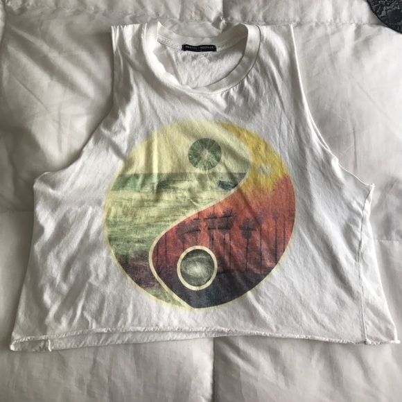 Super cute white crop top (not fitted) with a yin yang in the middle