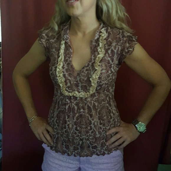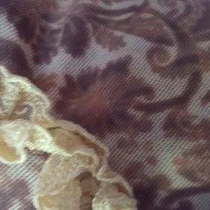 Mesh top with brown and cream pattern. Looks really cute with jeans or a skirt!