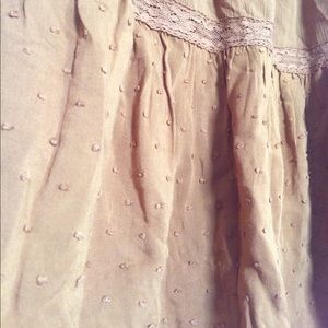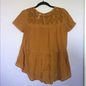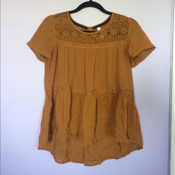 A very cute flowy top with lace. First three pictures are true to color---orange/amber color (third picture is not but I wanted to show the textured material on the bottom). Super fun and good for any season.