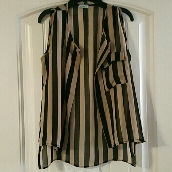 Brown and black horizontal striped sleeveless blouse