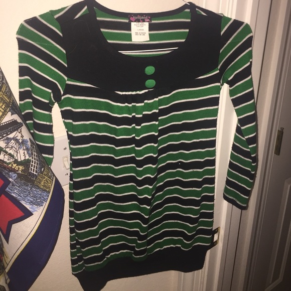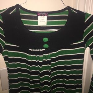 Green black and white striped sweater