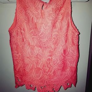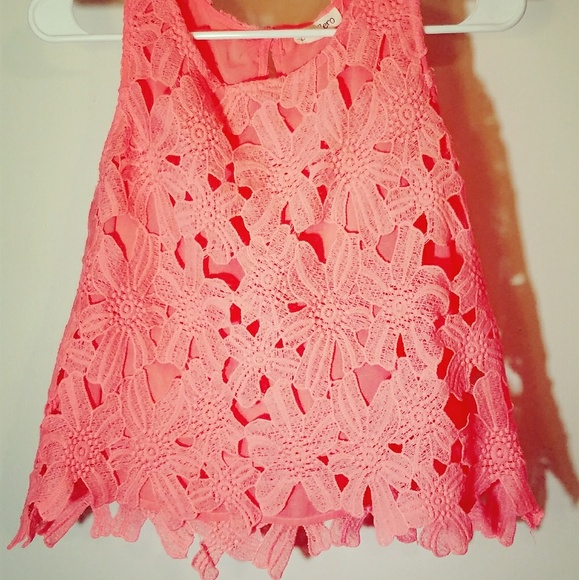 Pink summer top with floral images located on front and back