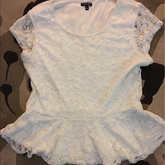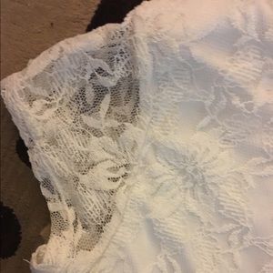 Lacy top, see through lace on sleeves, flouncy skirt, fully lined. Looks great with skirts, pants, and jeans!