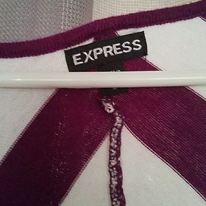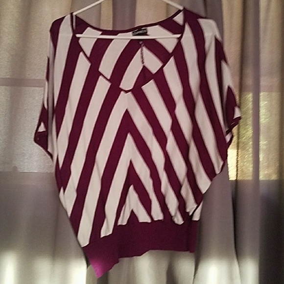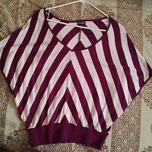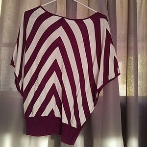 Woman's top. Purple and white with a chevron pattern and bat wing sleeves.