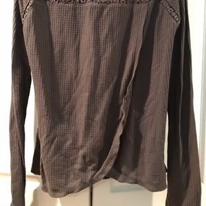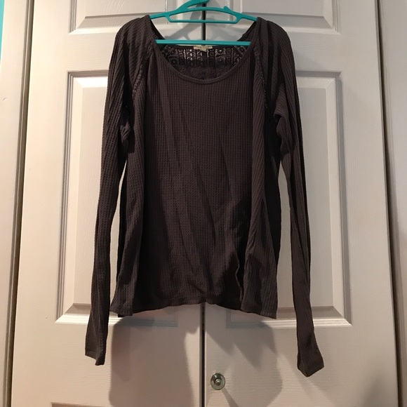 Gray longsleeve sweater top with a slit on the back