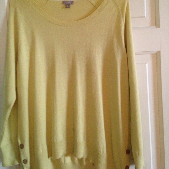 Pale green. 3 buttons on each side at bottom. Slightly longer in back. 25" long. Slight stain at bottom front and elbow.