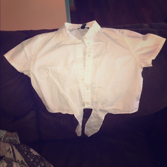 White crop top. Ties in the front