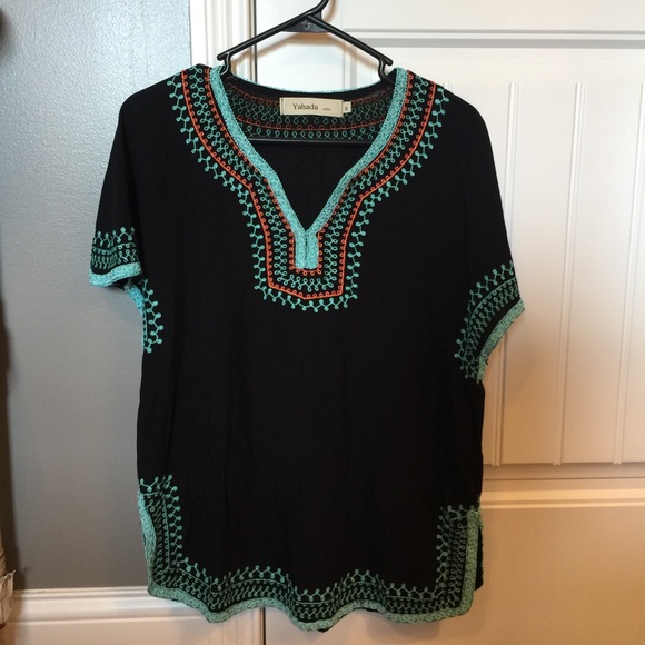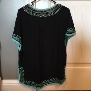 Black top (100% viscose) with real and orange detail. Super comfy! Worn 1x.