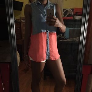 Button down flowy peach blouse