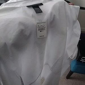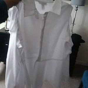 White peplum button down with ruffle cutout sleeves.