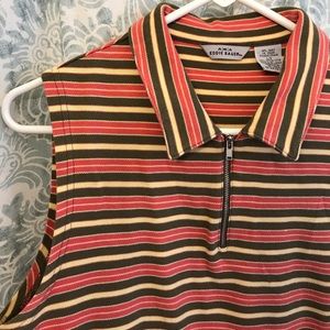 Vintage tank with zipper in the front , 90s fashion style, w/strips