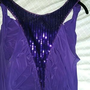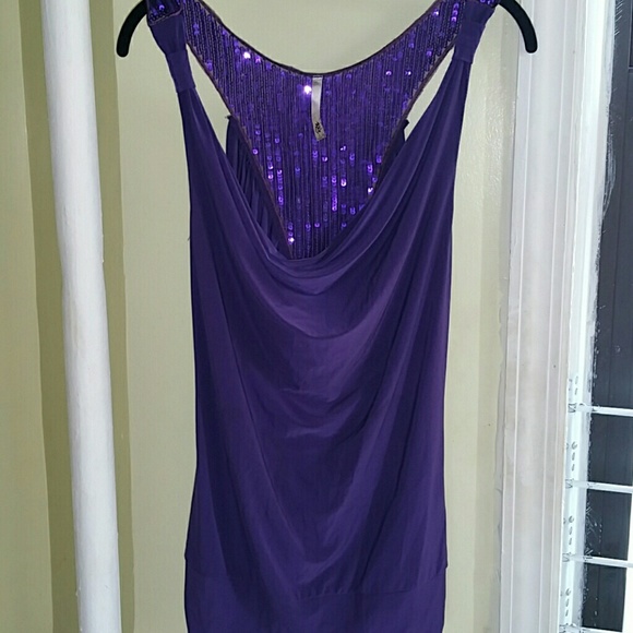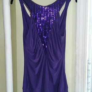 Beautiful purple top. The back is sequined. Says large but will fit medium