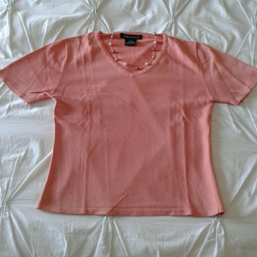 Amanda Vincy top, salmon color, labeled as Medium size but fit as a Small. Good used condition. (TOP ONLY)
