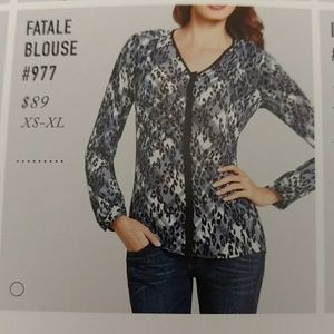 CAbi Fatale Blouse, fun print. Loose fit.