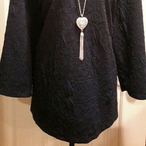 Textured navy shirt perfect with jeans or beautiful for work. Necklace not included.