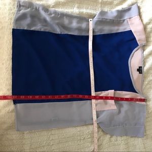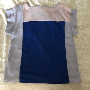 Super cute, mod shirt sleeves blouse. Blue, gray and cream. Never worn. Perfect condition. Love this top!